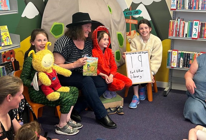 Our week began in our local Tarbert, Harris library, where Rory (the dragon from Rory and the Snack Dragons) ‘lost’ lots of his little dragon friends among the shelves. Luckily, we had help to find them, and want to say a big thank you to all the school-children who searched and helped us find the baby dragons and their eggs throughout the week.