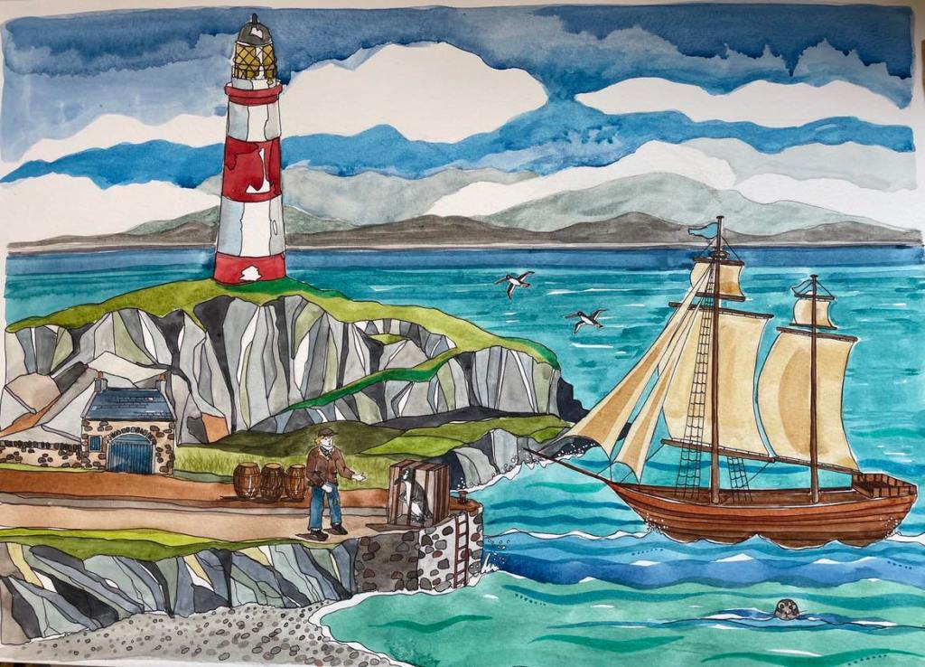 The story became the basis for a children’s picture book, The Great Auk’s Great Escape, which was published in 2024. Aimed at primary-aged children, it is a fictional re-imaging of how the auk’s escape might have happened, with some heroic involvement from the cabin boy.
